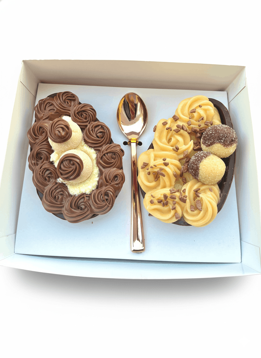 Personalize seu ovo escolhendo entre 4 modelos impressionantes e 8 sabores irresistíveis. Crie a combinação perfeita para celebrar a Páscoa com estilo e sabor.